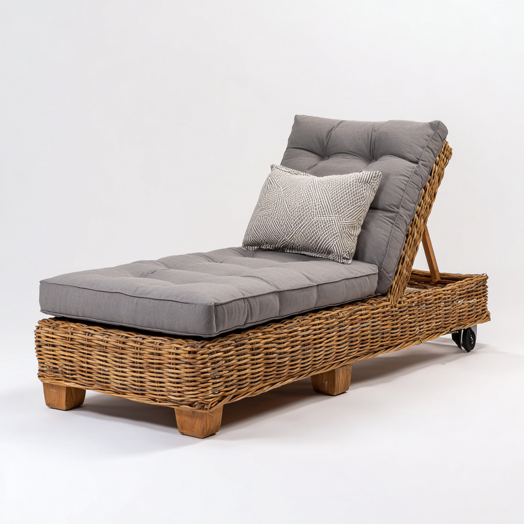 Lettino da sole-rattan naturale-legno-195x68x38 cm-grigio-design naturale