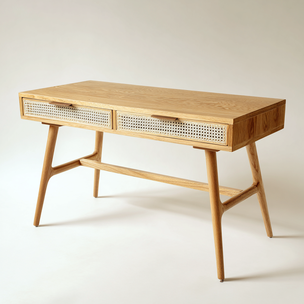 Scrivania - legno-rattan - 130x55x75 cm - naturale - stile nordico