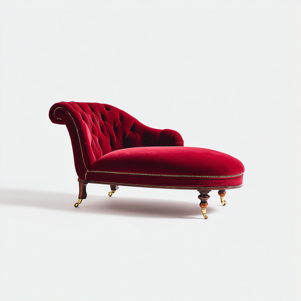 Chaise longue imbottita-velluto-legno massello-183x80x85 cm-rosso-stile classico
