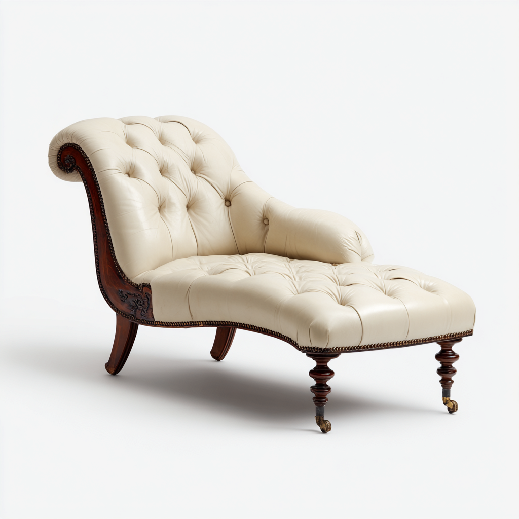 Chaise longue imbottita-pelle-legno massello-184x81x86 cm-crema-stile classico