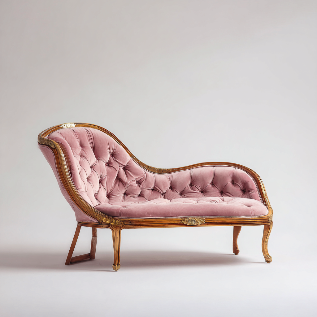 Chaise longue imbottita-velluto-legno massello-180x78x84 cm-rosa-oro-stile classico