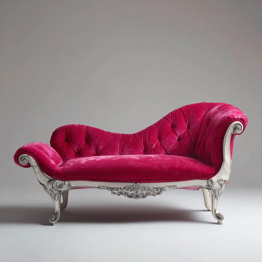 Chaise longue imbottita-velluto-legno massello-186x83x88 cm-fucsia-bianco-stile classico