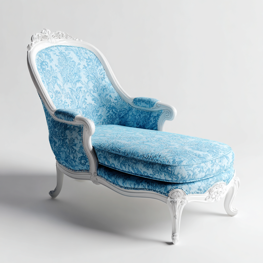 Chaise longue imbottita-tessuto-legno massello-178x80x90 cm-azzurro-bianco-stile classico