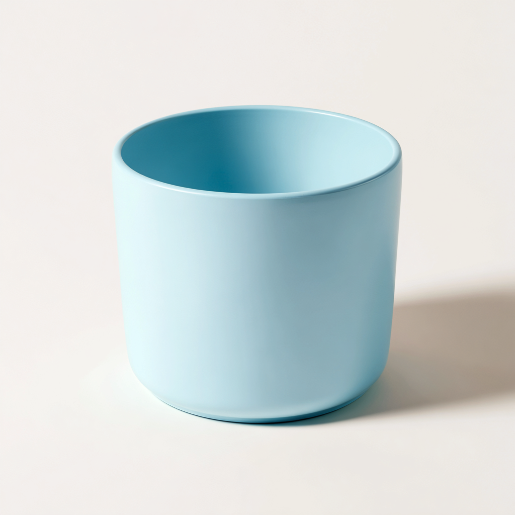 Realizzato in plastica resistente con finitura opaca uniforme, il vaso offre una superficie liscia e una buona resistenza all'umidità. Il colore azzurro chiaro contribuisce a un'estetica luminosa e facilmente abbinabile.
